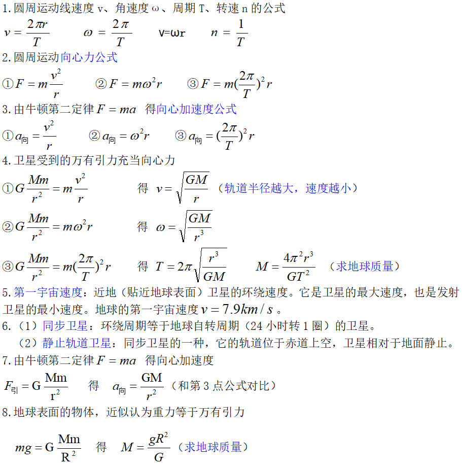圆周运动及卫星相关公式导图